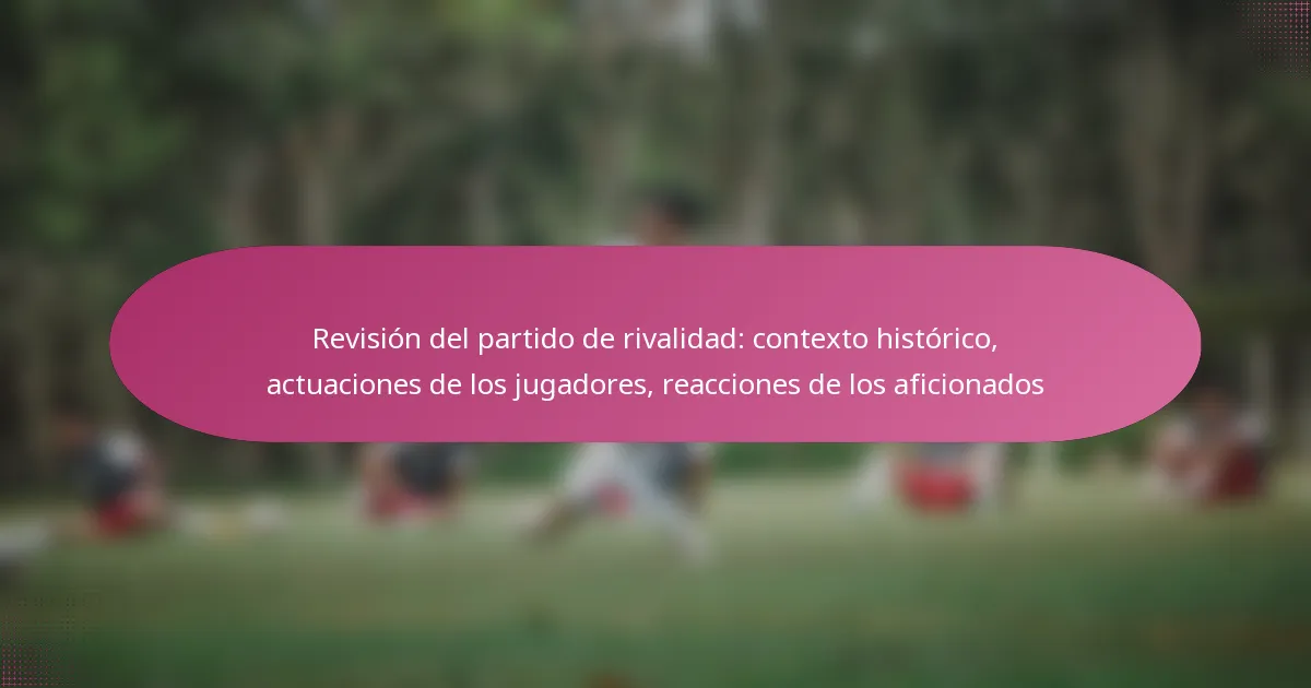 ¿Cuál es el contexto histórico del partido de rivalidad?
